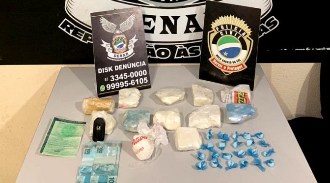 Renato foi preso em flagrante pelo crime de tráfico de droga e encaminhado à Delegacia de Polícia para os devidos procedimentos legais.