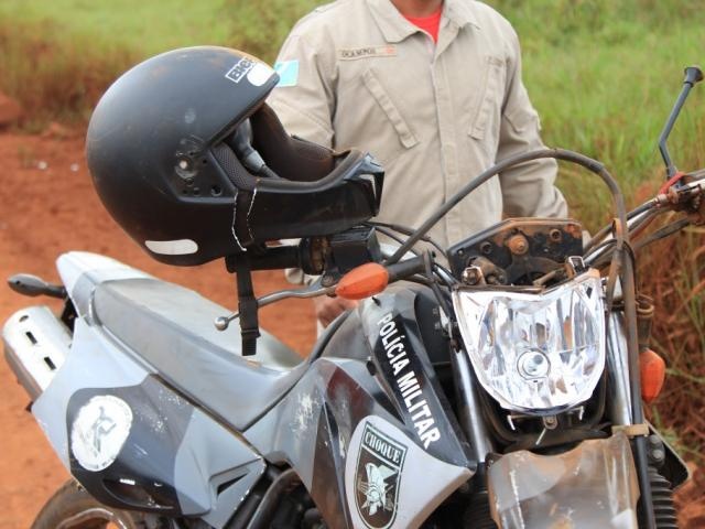 Um policial do Batalhão de Choque ficou ferido após cair da motocicleta durante uma perseguição a um carro de passeio em uma estrada vicinal perto da BR-262, na saída para Três Lagoas. O capacete da vítima, de 31 anos, chegou a rachar com a queda. A polícia não deu detalhes da perseguição.