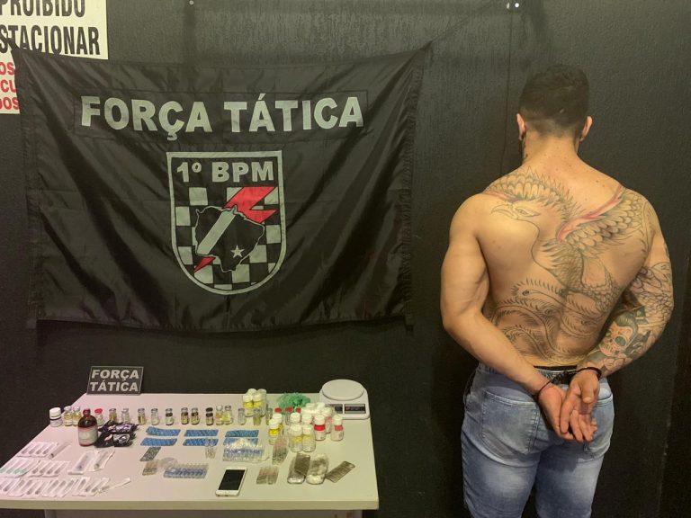 Foi preso e levado para a delegacia de polícia, na noite desta segunda-feira (29), em Campo Grande, no bairro Universitárias, um fisiculturista de 25 anos acusado de vender anabolizantes.