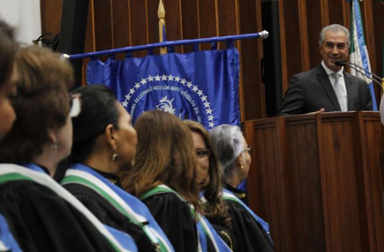 O governador Reinaldo Azambuja foi homenageado na terça-feira (30) com o Gran Colar da Academia Feminina de Letras e Artes de Mato Grosso do Sul (Afla-MS), em razão dos relevantes serviços prestados à academia. “A Academia Feminina de Letras e Artes tem um papel importante na democratização da cultura”, destacou o governador.