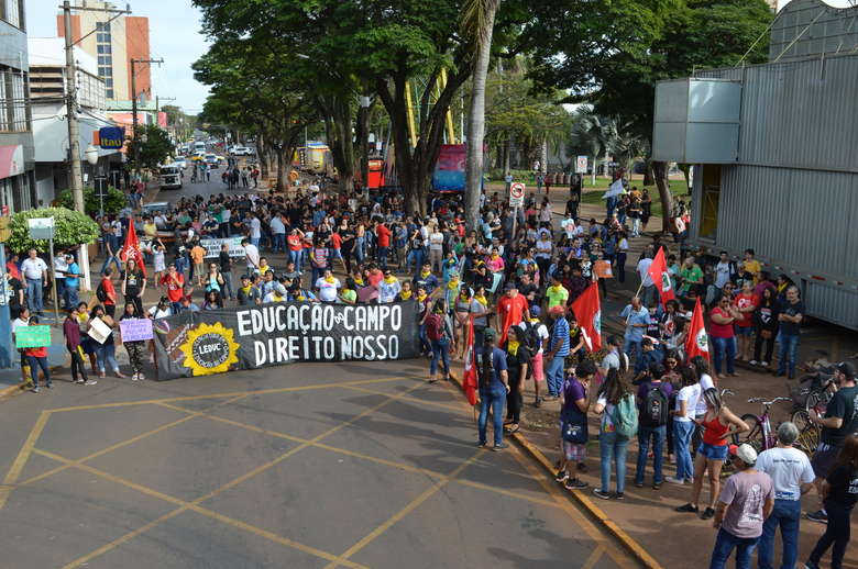 Com trio elétrico fechando a avenida Joaquim Teixeira Alves, no sentido centro/shopping, as falas enfatizavam a rejeição à proposta de reforma da Previdência, cortes na Educação e também contra a nomeação da reitora interina Mirlene Ferreira Damázzio, na UFGD (Universidade Federal da Grande Dourados).