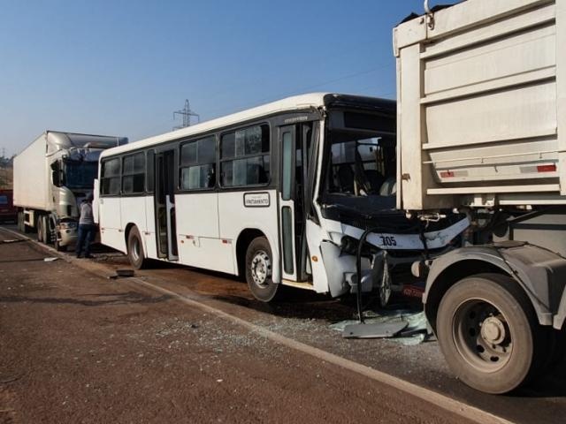 Acidente de trânsito envolvendo dois caminhões, um ônibus e uma motocicleta, deixou três pessoas feridas na manhã desta quinta-feira (22) na BR-262, próximo a ponto do córrego Imbirussu, em Campo Grande.