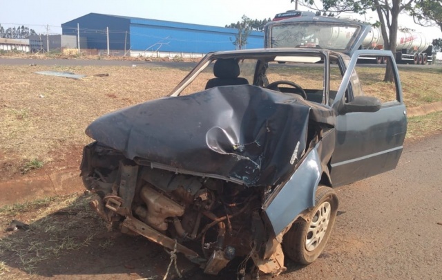 Motorista ainda não identificado perdeu o controle Fiat Uno azul que dirigia, colidiu o carro em dois postes de iluminação pública e capotou. O caso aconteceu por volta das 13h30 deste domingo (22), no prolongamento da Avenida Duque de Caxias, próximo a uma fábrica de refrigerante, na região do Núcleo Industrial, em Campo Grande.