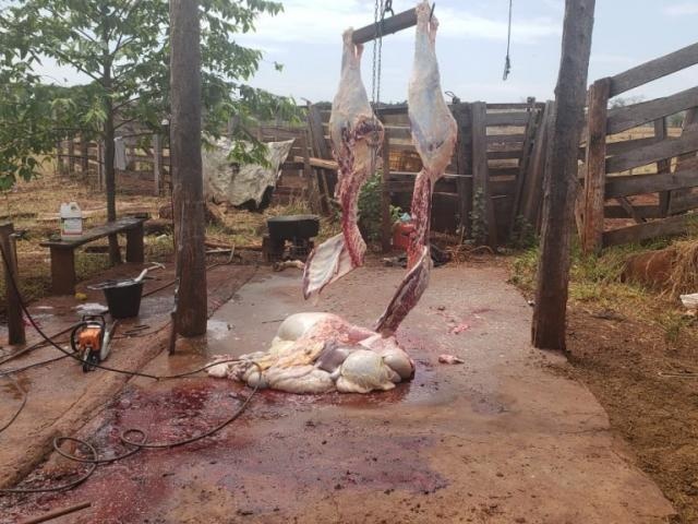 Dois abatedouros clandestinos localizados no assentamento Santa Mônica, em Terenos, foram fechado por policiais militares ambientais na segunda-feira (14). Um dos responsáveis pelo local, homem de 34 anos, foi multado em R$ 6 mil. O outro em R$ 5 mil. Eles também foram levados para a delegacia por porte ilegal de arma porque tinham rifles, mas acabaram liberados após pagamento de fiança.