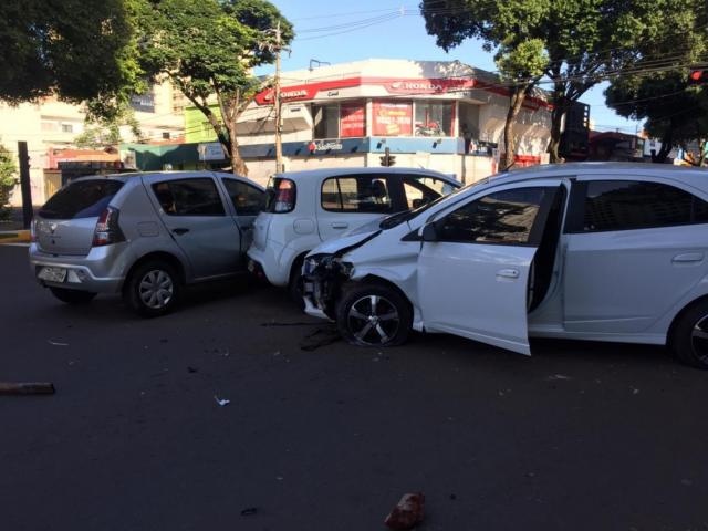 Motorista que diz trabalhar por aplicativos de transporte, de 24 anos, perdeu o controle da direção do veículo que conduzia, subiu no canteiro e colidiu contra dois veículos após invadir pista. O acidente ocorreu na manhã deste domingo (26) no cruzamento da Avenida Afonso Pena com Rua Rui Barbosa, no centro de Campo Grande.