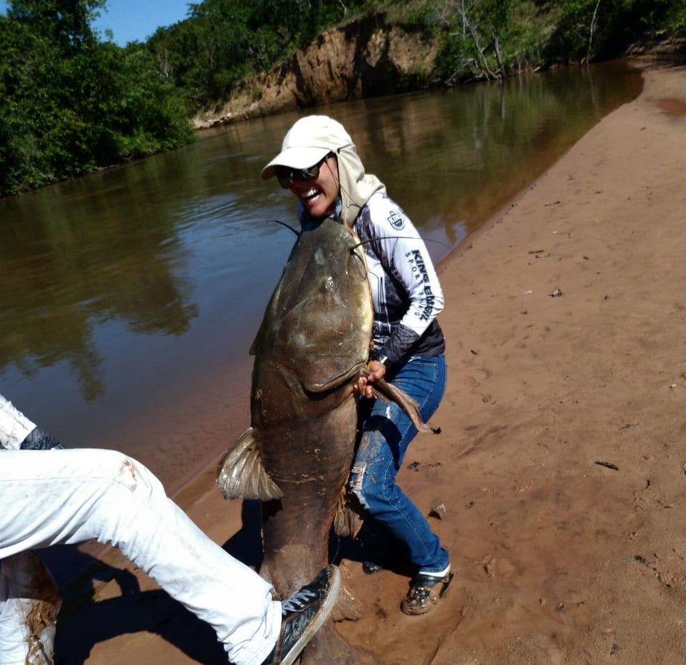 A dentista Nicele Furtado de Freitas, de 37 anos, capturou no último sábado (13) um peixe de 80 quilos e de 1,73 metro de comprimento no rio Jauru, em Alcinópolis, região norte de Mato Grosso do Sul.
