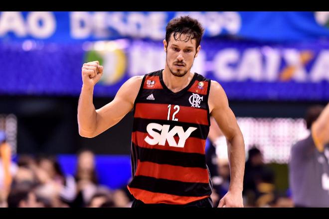 rasileiro Rafael Mineiro, pivô do time de basquete do Flamengo. Pivô do Flamengo está nas quartas de final da competição da Fiba