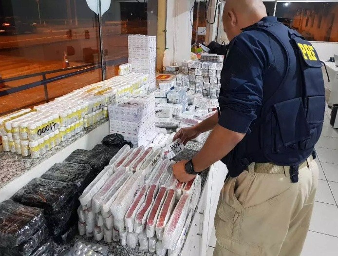 Conforme a PRF (Polícia Rodoviária Federal), por volta das 20h, a equipe fazia fiscalização de rotina quando abordou uma Ford Courier com placas de São Paulo (SP). Durante vistoria, foram encontradas várias caixas de medicamentos de uso proibido no Brasil.