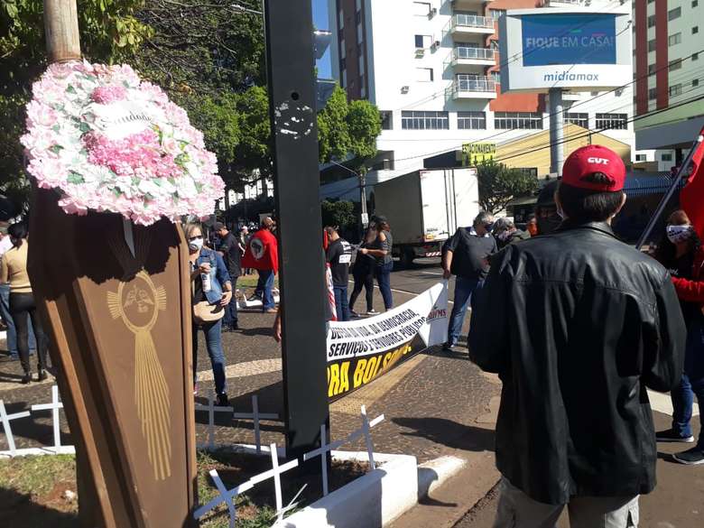 “Nós estamos aqui para mostrar para a sociedade que mais de 50 mil vidas foram ceifadas (pela covid-19), em prol do trabalho e da democracia”, comentou o presidente da Central Única dos Trablhadores (CUT-MS), Vilson Gregório.