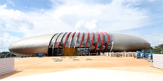 A parte que estava sob responsabilidade da Aluminum era a conclusão do revestimento de alumínio composto dos forros internos, do auditório e da biblioteca, e das monocapas do Aquário. Ela teria 240 dias para a conclusão do serviço.