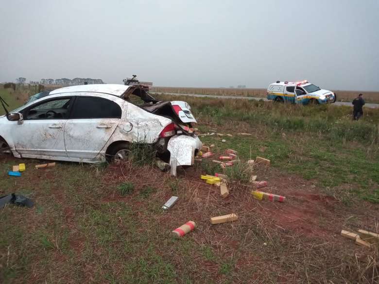 A Polícia Militar Rodoviária apreendeu na manhã desta segunda-feira (26/10), na MS 156, em Amambai, 654 kg de maconha. O fato ocorreu após traficante perder o controle e capotar o veículo na rodovia.