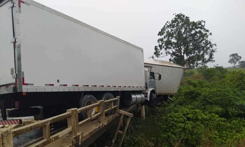 Batida envolveu quatro veículos de carga e aconteceu na Região do Alto Paranaíba. Um deles por pouco não caiu de ponte