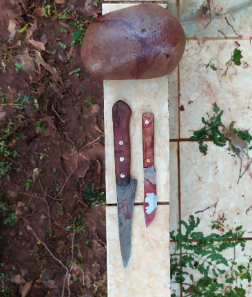 O atual companheiro dela também foi liberado. Facas e pedra encontradas no local do crime (Divulgação)