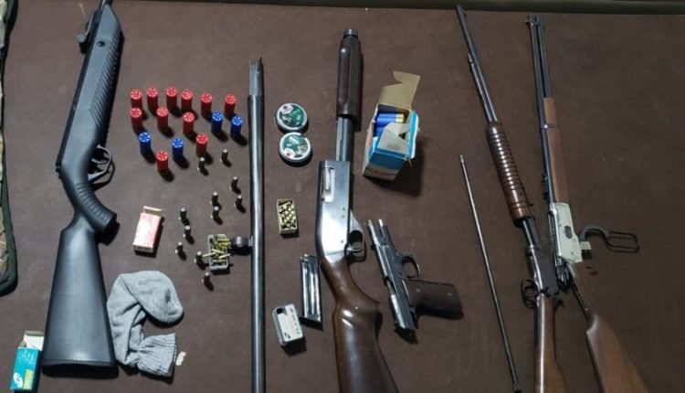 Os militares foram até a residência, e lá, encontraram diversas munições de vários calibres e diversas armas, como pistola, duas carabinas, um revólver e espingarda. Todas as armas foram apreendidas, mas o homem conseguiu fugir antes da chegada da polícia.