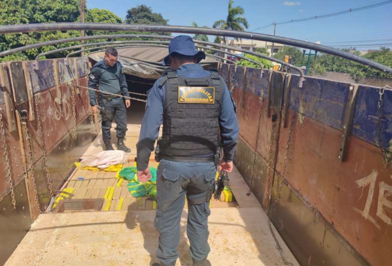 Conforme a ocorrência, o entorpecente estava em fundo falso da carreta Scania com placas de Dourados.