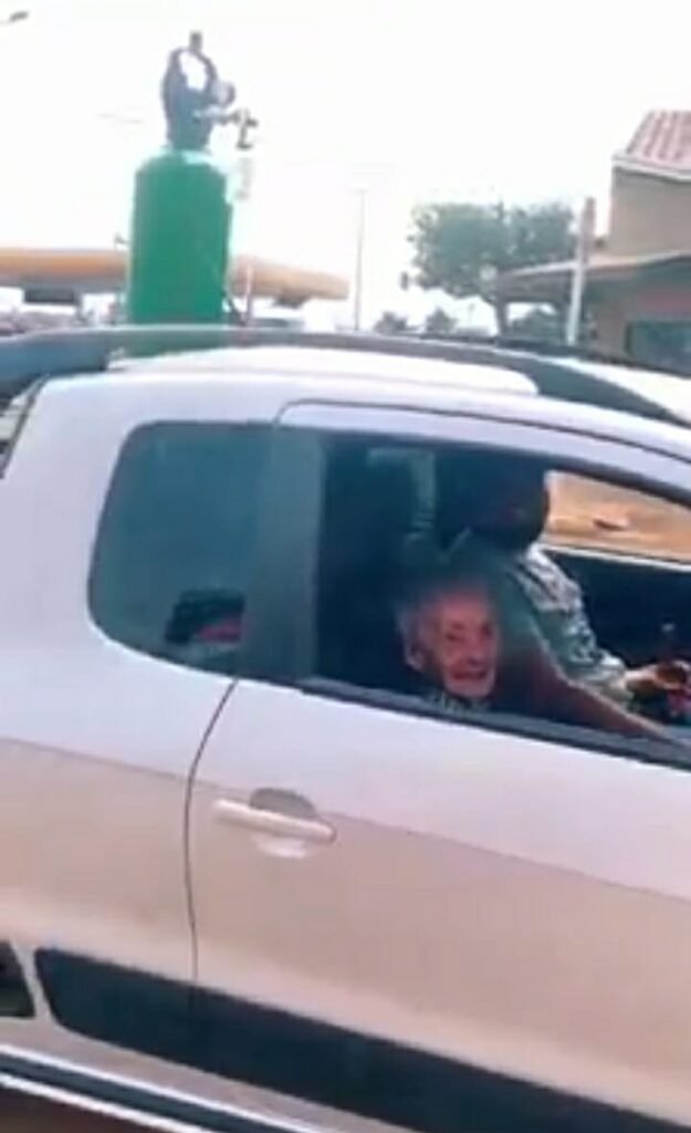 Junto do carro de Maycon, uma picape, estava o cilindro de oxigênio de Lucinda. “Ela deu só umas bicadinhas na verdade. Voltou pra casa muito feliz”.