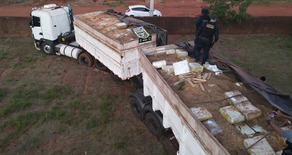 Os militares desconfiaram e fizeram a abordagem. No caminhão, foi identificada carga de maconha escondida no soja, que totalizou aproximadamente 36,5 toneladas. O motorista acabou preso em flagrante e encaminhado para a Delegacia de Deodápolis.