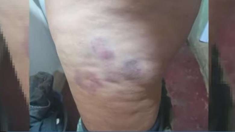 A vítima estava com vários machucados pelo corpo e com muita fome. Ela contou, quando foi socorrida pela vizinha, que estava sendo mantida em cárcere privado por três dias pelo marido e que estava com muita fome. A mulher foi agredida pelo marido com uma barra de ferro e estava com roxos no rosto e nas pernas.