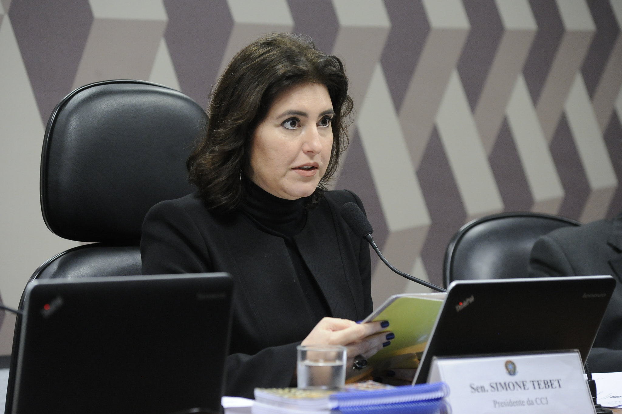 Comissão de Constituição, Justiça e Cidadania (CCJ) realiza reunião para apreciação de indicados para compor o Conselho Nacional de Justiça (CNJ) e para o Conselho Nacional do Ministério Público (CNMP). Também na pauta projetos que sustam flexibilização de posse de arma.rrÀ mesa:rpresidente da CCJ, senadora Simone Tebet (MDB-MS).rrFoto: Edilson Rodrigues/Agência Senado