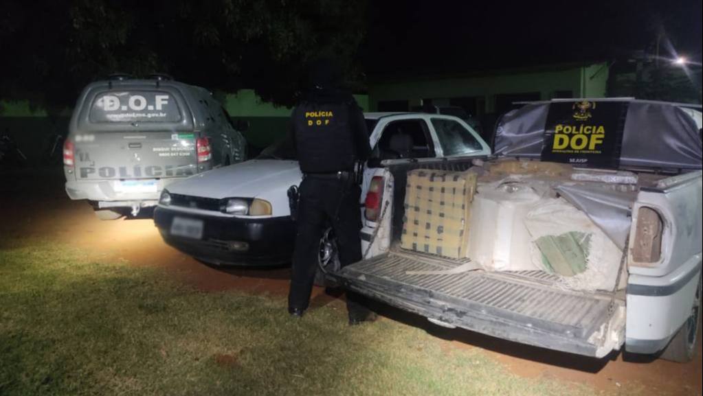 Policiais do Departamento de Operações de Fronteira (DOF) apreenderam, na tarde de ontem (domingo), um veículo VW Saveiro carregado com 545 Kg de maconha e 5,1 Kg de skank.