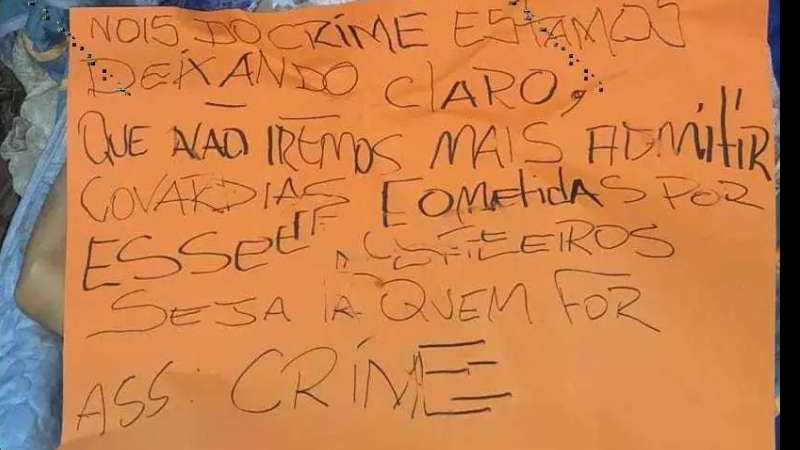 No bilhete também estava escrito, “nós do crime estamos deixando claro que não iremos maios admitir covardias cometidas por esses justiceiros, seja quem for”, segundo o site Dourados News.