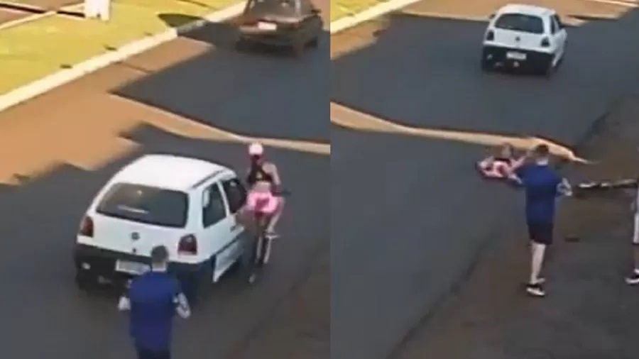 Uma câmera de monitoramento registrou o momento em que o carro se aproximou da ciclista. Neste momento, o carona passou a mão no corpo da vítima.