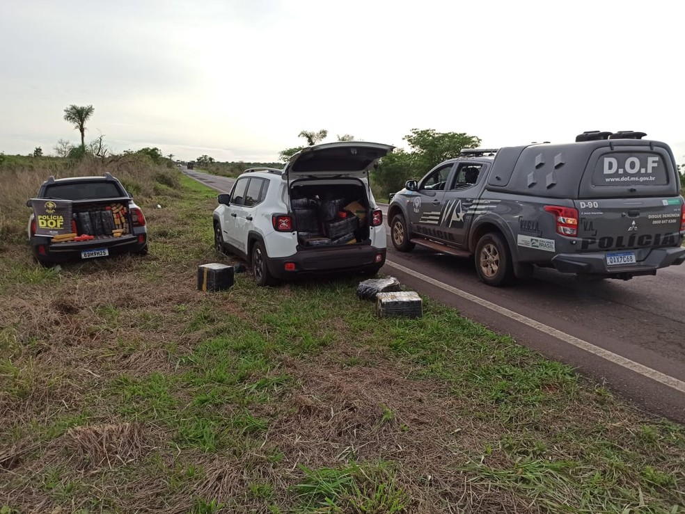 Os policiais faziam patrulhamento na MS-295 quando avistaram os veículos suspeitos. Na abordagem, foram localizados em uma Renault/Aroch 771 quilos de maconha. Já em um Jeep/Renegade foram encontrados 710 quilos da mesma droga. Nos carros foram localizados ainda rádios comunicadores, utilizados pelos traficantes para se comunicarem.