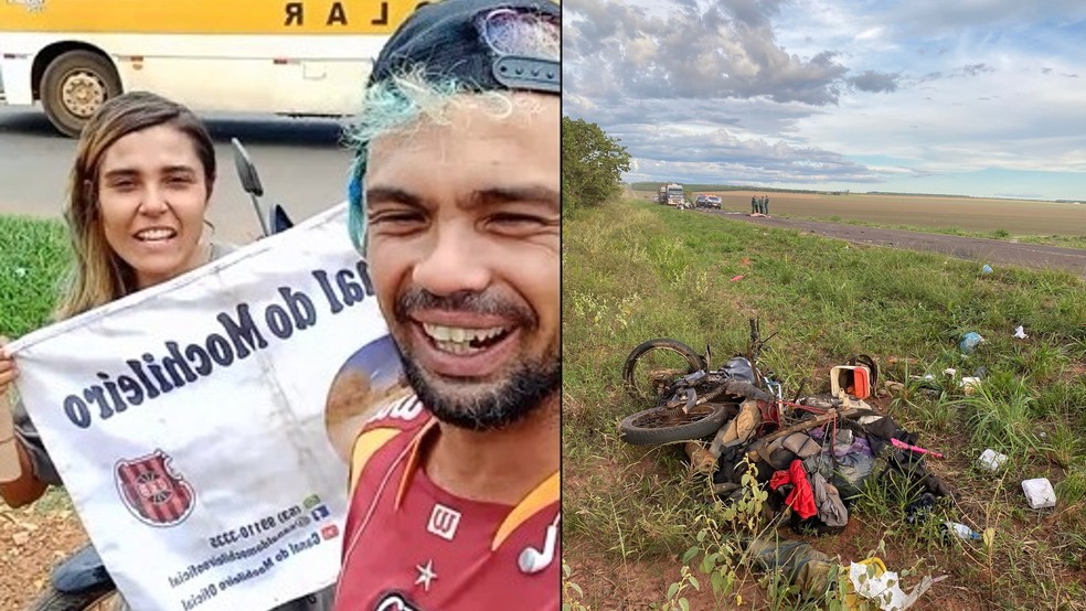 Após mais de 36 mil quilômetros percorridos pelo Brasil, casal está em estado grave depois do acidente em Mato Grosso do Sul. — Foto: BNC Notícias e Redes socias/Reprodução