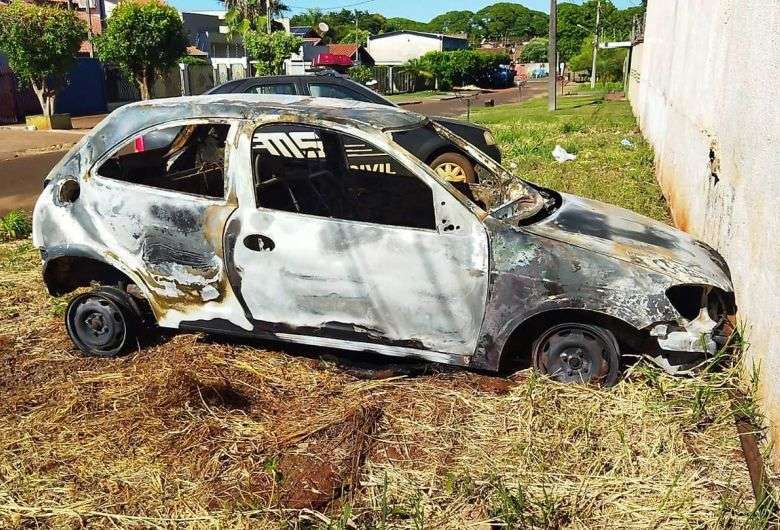 Horas após o roubo, o veículo foi encontrado pegando fogo