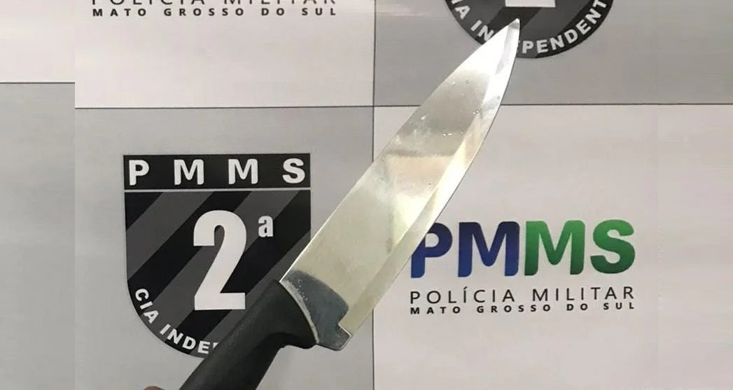 O homem atirou a faca no chão e lutou com o PM que o dominou e o algemou.
