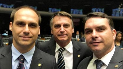 Jair Bolsonaro com os filhos Eduardo e Flávio.