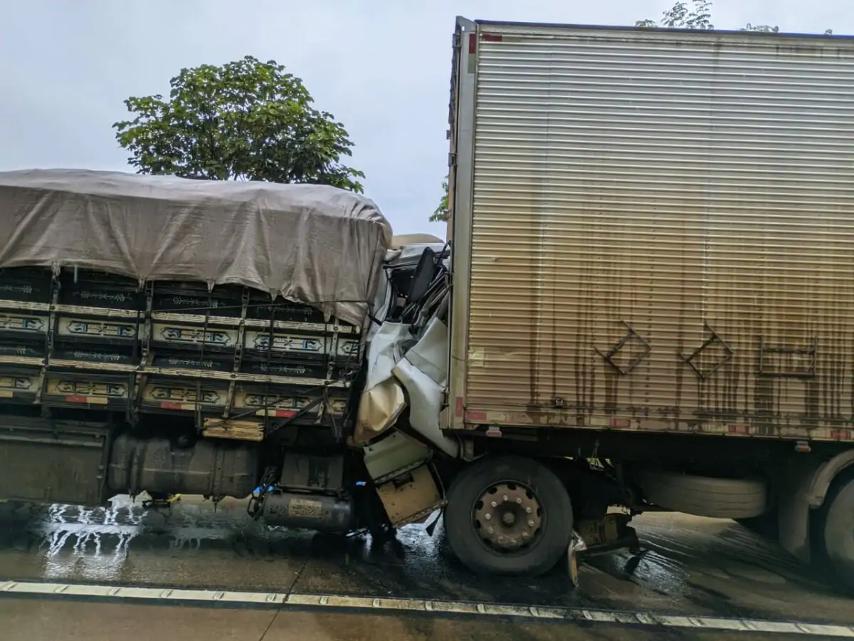 Com a colisão, o condutor da carreta ficou preso às ferragens e morreu no local. A vítima ainda não foi identificada. De acordo com a PRF (Polícia Rodoviária Federal) que também está na ocorrência, o outro motorista do caminhão saiu praticamente ileso.
