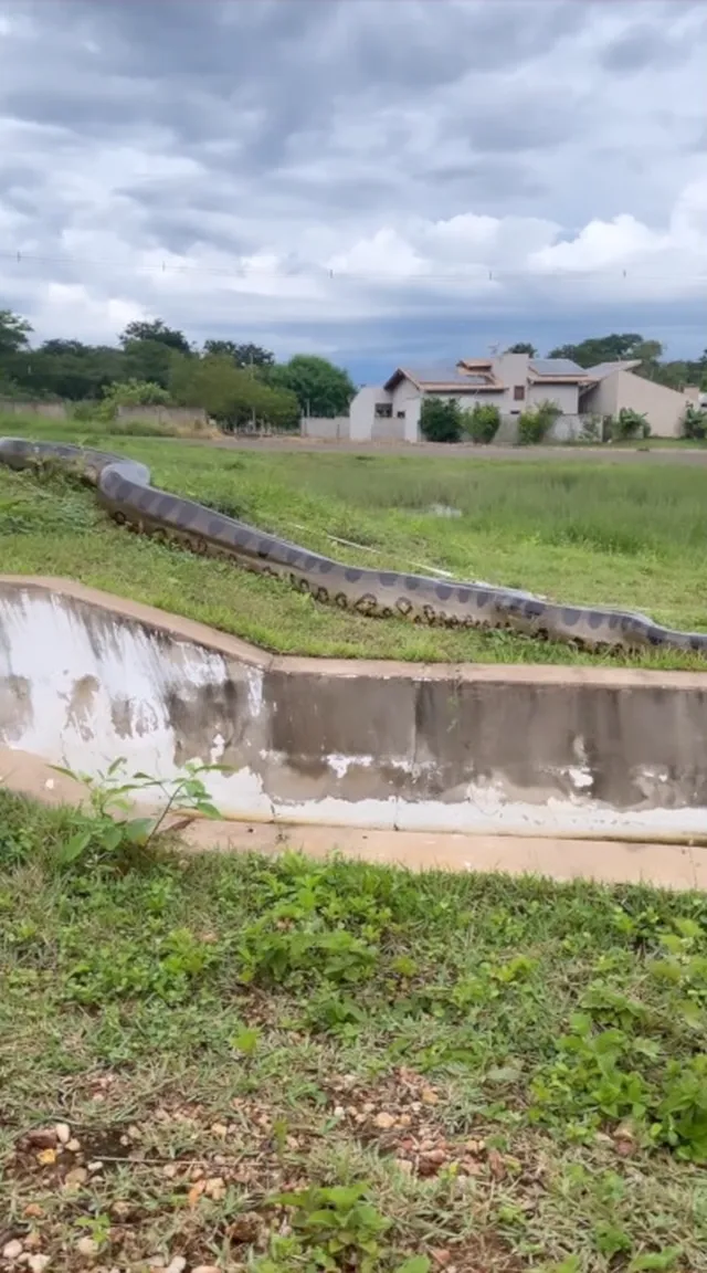 Na quarta-feira (8), uma sucuri, de aproximadamente 6 metros de comprimento, foi encontrada dentro de um bueiro na região de um condomínio, em Bonito (MS). A serpente gigante estava enrolada na “boca de lobo”.