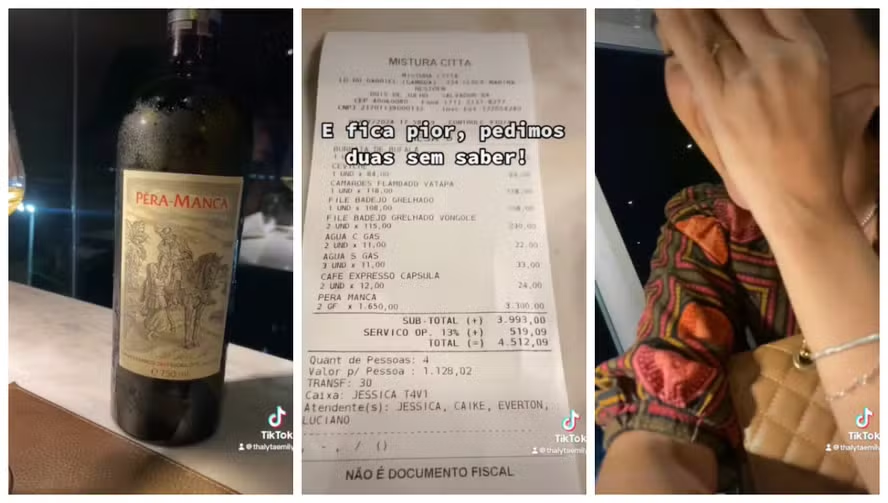 Um grupo de quatro amigos saiu para aproveitar um jantar “tranquilo”. Para isso, visitaram uma unidade do restaurante Mistura, em Salvador, no último domingo (7/7). Lá, pediram diversos pratos, água, café e duas garrafas de vinho branco português Pêra Manca. O que os amigos não sabiam é que tinham se enganado com o preço da bebida: pensaram que era R$ 165, mas o valor correto era de R$ 1.650.