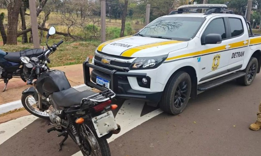 O Detran-MS informou que a moto estava com licenciamentos vencidos desde o ano de 2019 no valor de 1.731,54 e o Imposto sobre a Propriedade de Veículos Automotores (IPVA) de R$ 333,58. Diante dos fatos, o homem foi autuado e a motocicleta foi apreendida e encaminhada para o pátio do órgão.