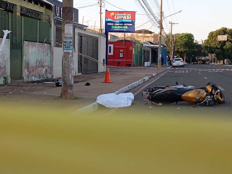 Motociclista não identificado morreu na tarde desta segunda-feira (26), após perder o controle da direção da motocicleta CB 300, e bater contra um poste. Acidente aconteceu na Avenida Bandeirantes, próximo ao cruzamento com a rua Terenos, no bairro Amambaí, em Campo Grande.