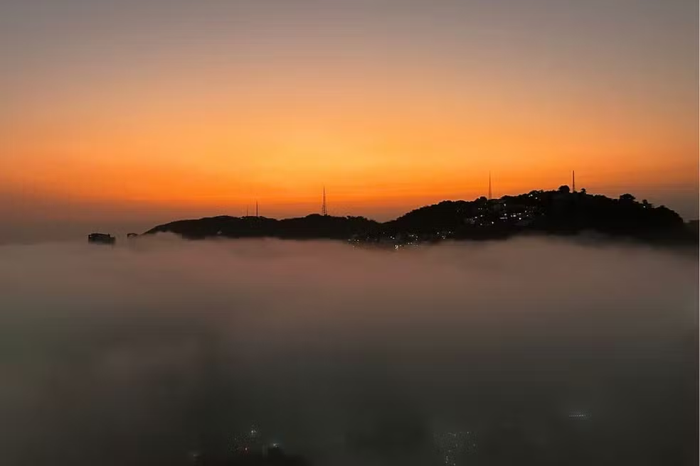 Tempo muito seco faz com que as partículas de poluição se concentrem nas camadas mais baixas da atmosfera. A cor alaranjada e avermelhada está relacionada com a interação da luz com os poluentes.