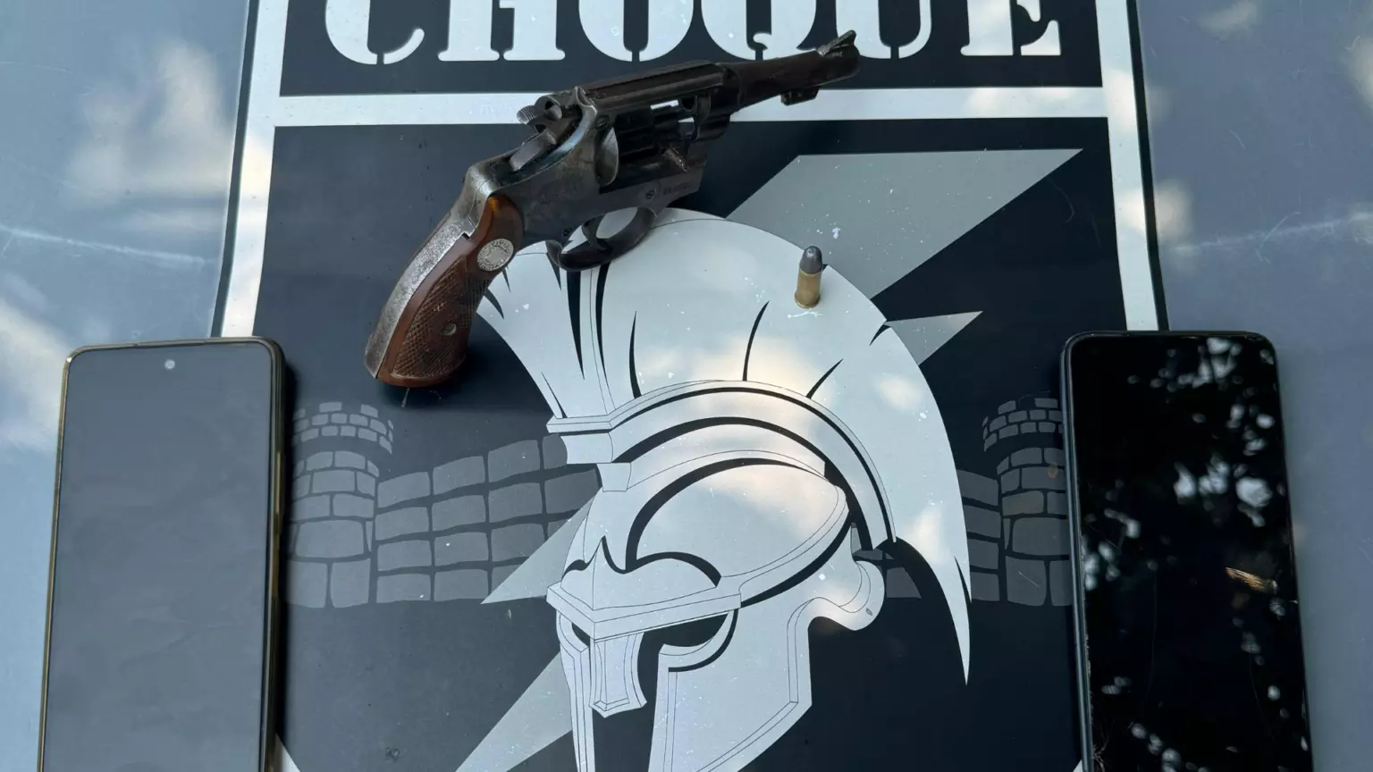 Com eles foram apreendidos um revólver Colt calibre .32, uma munição de mesmo calibre e dois aparelhos celulares.