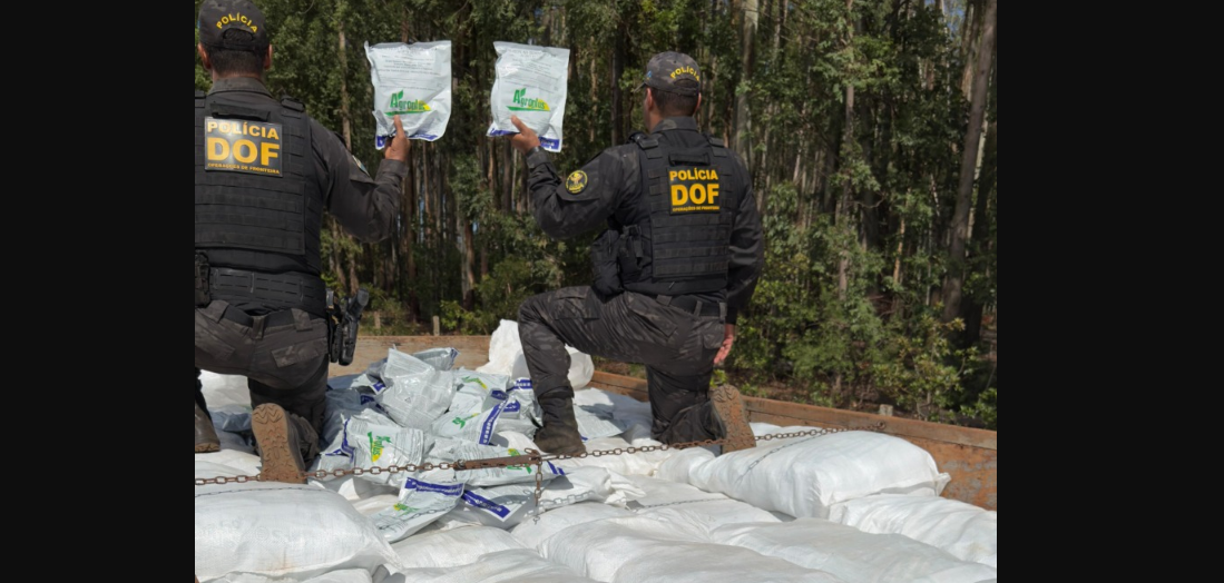 A equipe do Departamento de Operações de Fronteira (DOF) apreenderam uma camionete modelo Ford F-4000, de cor prata, carregada com 3.500 quilos de defensivo agrícola ilegal, sem a documentação para circulação e comércio no Brasil.