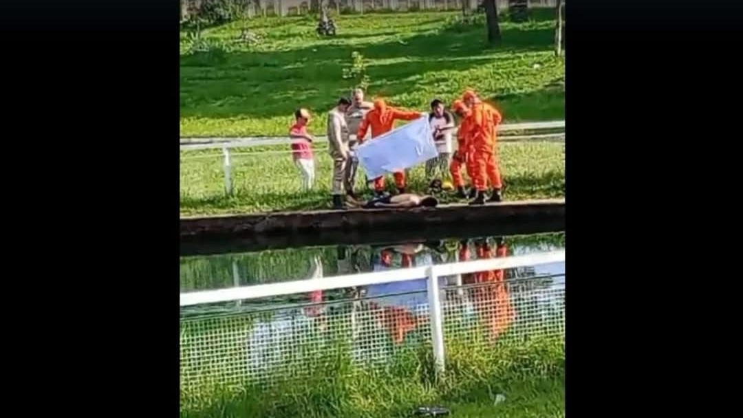 Devido ao calor, a vítima entrou na lagoa que tem sinalizações dizendo expressamente que é proibida a entrada para banho. Quando, em dado momento, após um mergulho, o jovem começou a boiar.