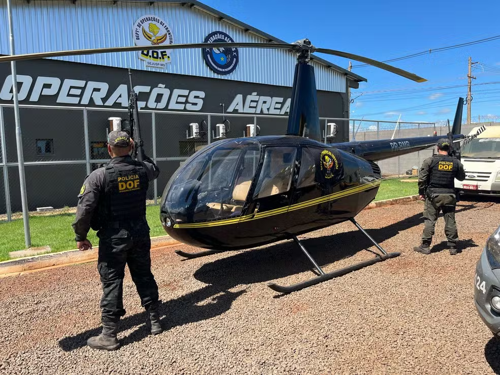 Uma viatura guincho da Polícia Militar de Amambai prestou apoio no transporte do helicóptero até a Delegacia Especializada de Repressão aos Crimes de Fronteira (Defron), em Dourados, onde as armas de fogo e o helicóptero apreendidos foram entregues.
