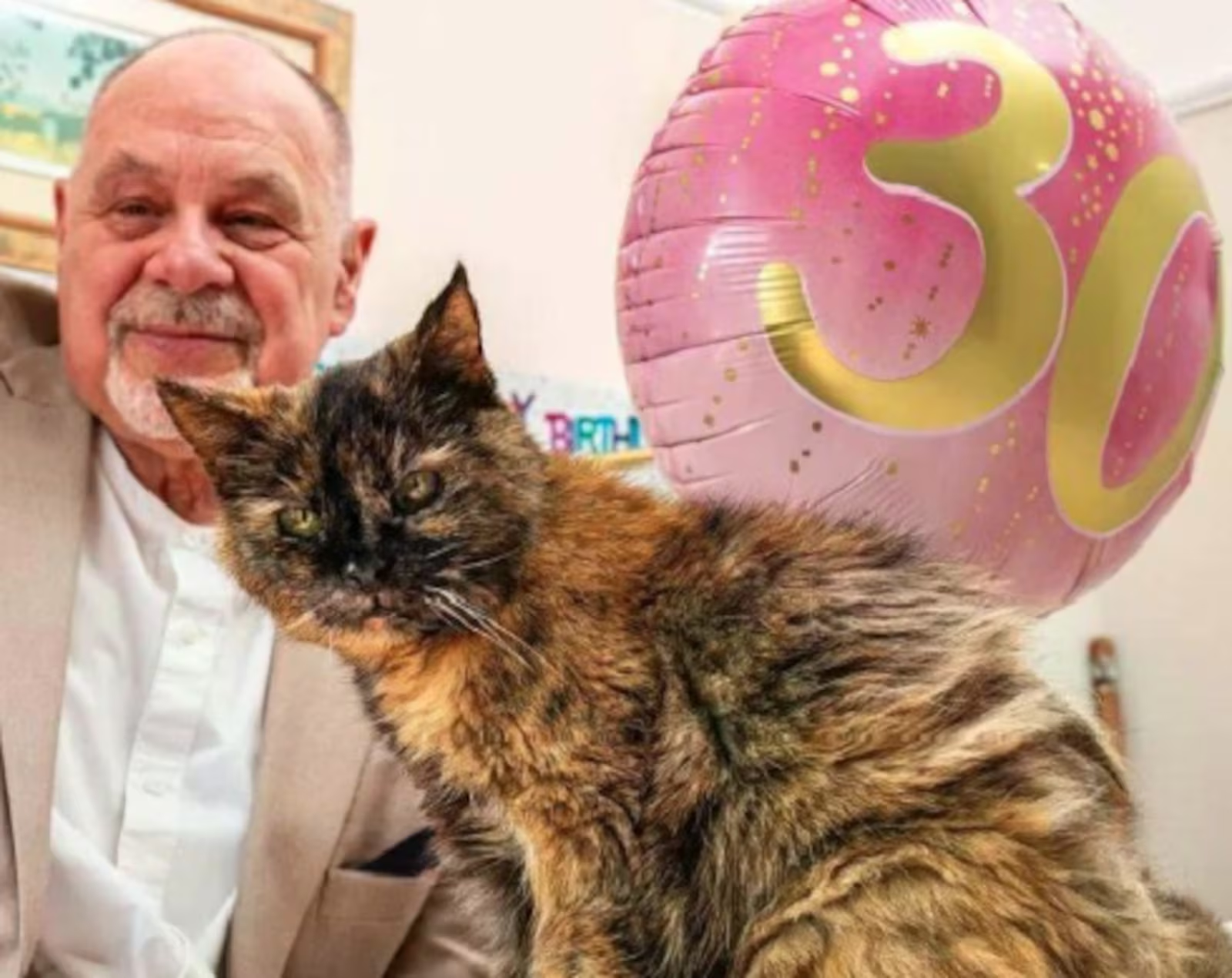 O britânico Leslie Greenhough acredita que sua gata Millie, que acaba de completar 30 anos, seja a mais velha do mundo. Para celebrar a data, ele organizou uma festa especial, com direito a um bolo personalizado no formato do rosto do animal. Embora 30 anos possam parecer pouco em termos humanos, para um gato, essa idade equivale a impressionantes 138 anos.