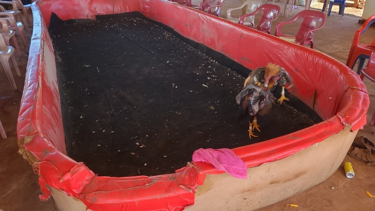 No local, foi constatada a existência de uma espécie de arena de alvenaria, o que indica que esse tipo de evento é recorrente, considerando a estrutura fixa montada para as rinhas. Foram encontrados 44 galos que, além de feridos pelas disputas nas lutas, também eram mantidos em condições inadequadas, sem oferta de água e alimento, caracterizando situação de maus-tratos, conforme prevê a legislação ambiental vigente.