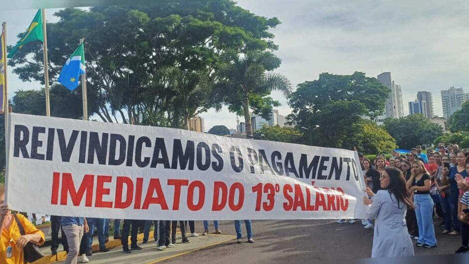 Com 13º salário atrasado, funcionários da Santa Casa realizaram uma manifestação no pátio do hospital reivindicação o pagamento da gratificação. Com cartazes, os trabalhadores pediram a direção da unidade que seja feito pagamento.