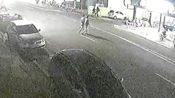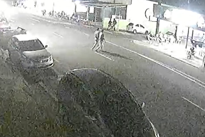 Imagens de segurança mostram o momento em que uma mulher de 42 anos é atropelada na Rua Brilhante, entre a Rua Hermenegildo Pereira e a Travessa Lótus, em Campo Grande, na madrugada deste sábado (14). A vítima acabou tendo parte da perna arrancada com o impacto da batida.