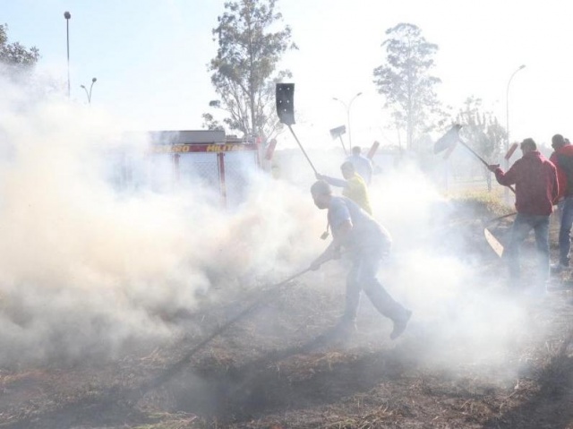 Briga de incêndio ajuda o Corpo de Bombeiros