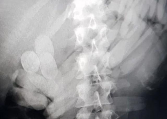 Após o exame de Raio-X foram constatadas várias cápsulas no intestino da mulher, que está internado sob escolta policial