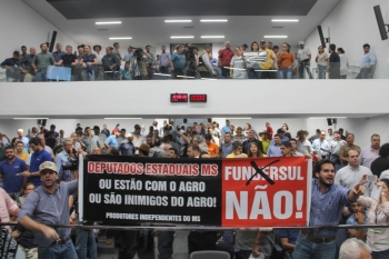 A votação ocorreu em meio a protestos de representantes do setor rural e comercial que estavam na Casa de Leis. A sessão solene começou turbulenta, pois não foi aberta como de costume a galeria superior, onde nem todos manifestantes contrários às mudanças no Fundersul (Fundo de Desenvolvimento do Sistema Rodoviário) puderam participar da sessão. Segundo o presidente da Casa de Leis, deputado Paulo Corrêa (PSDB) afirmou que não pode participar todos por motivos de segurança e acomodação.