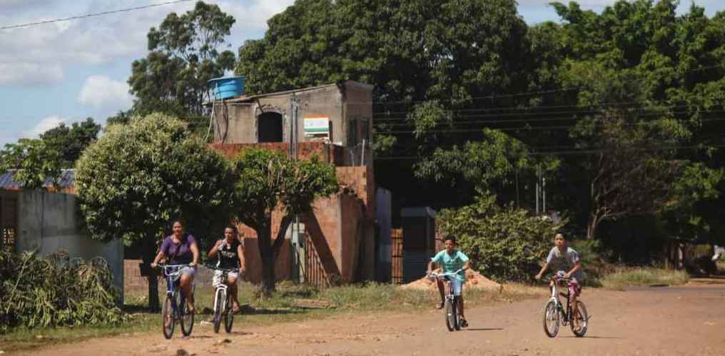 A auxiliar de serviços gerais Leidiane Elias, 29 anos, mora numa casa com quatro cômodos com o esposo e os cinco filhos com idades de 4 a 12 anos. A gente não tem o que fazer, mas ficar em casa trancada também não dá certo. É muita gente aqui em um espaço pequeno. As crianças querem brincar”, lamentou. Os dois trabalham na construção de casas da comunidade, porém o serviço foi paralisado por 15 dias