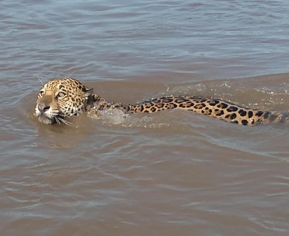 Segundo o pescador, os amigos que trabalham na área do comércio, ficaram muito surpresos porque não esperavam encontrar uma onça-pintada no caminho. Pouco antes, o grupo flagrou uma anta também atravessando o rio.